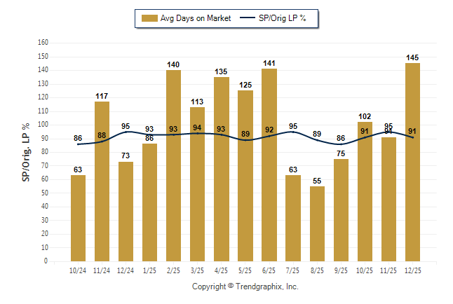 December 2025 Average Days on Market trend was Rising and Sold/Original List Price Ratio Remains Steady**