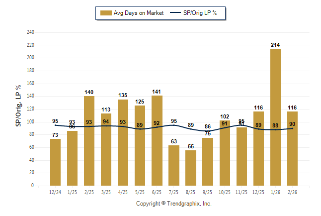 February 2026 Average Days on Market trend Remains Steady and Sold/Original List Price Ratio Remains Steady**