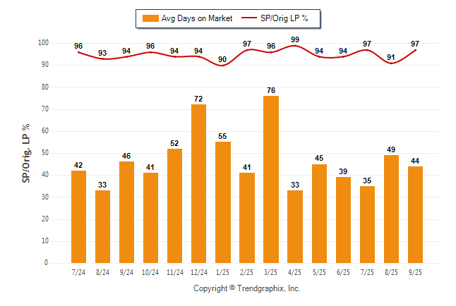 September 2025 Average Days on Market trend Remains Steady and Sold/Original List Price Ratio Remains Steady**