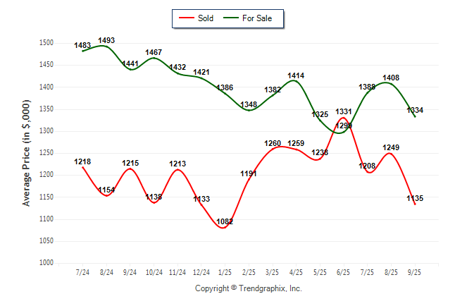 September 2025 Average For Sale Price was Neutral and Average Sold Price was Depreciating**