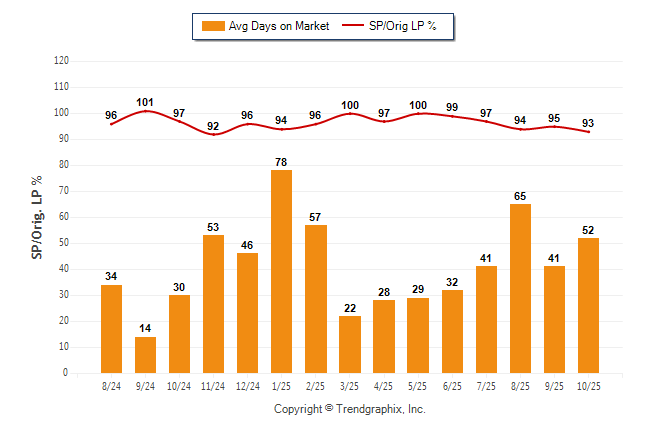 October 2025 Average Days on Market trend Remains Steady and Sold/Original List Price Ratio was Falling**