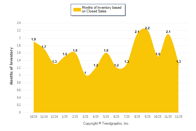 Curnt vs. Same Month 1 Yr Ago: Months of Inventory (Closed Sales) 0%