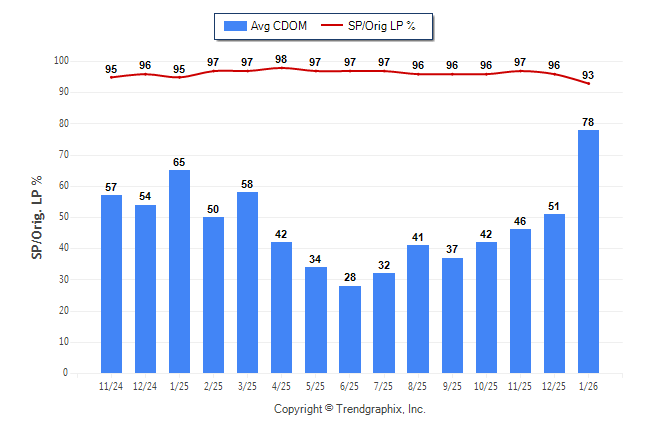 January 2026 Average Continuous Days on Market trend was Rising and Sold/Original List Price Ratio was Falling**