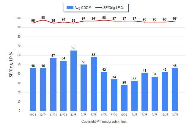 November 2025 Average Continuous Days on Market trend was Rising and Sold/Original List Price Ratio Remains Steady**