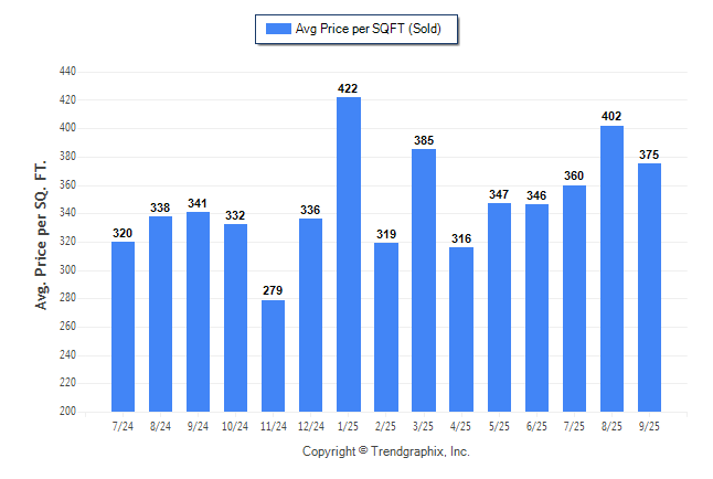 September 2025 Average Sold Price per Square Footage was Neutral**