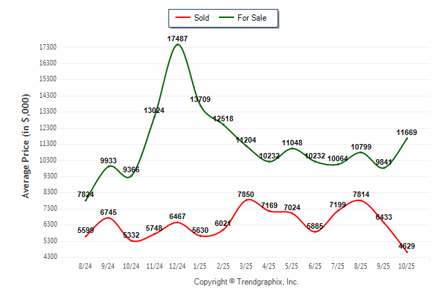 October 2025 Average For Sale Price was Appreciating and Average Sold Price was Depreciating**