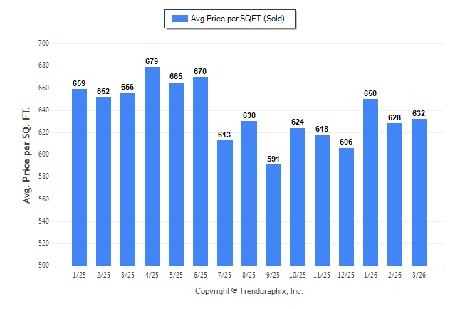 March 2026 Average Sold Price per Square Footage was Neutral**