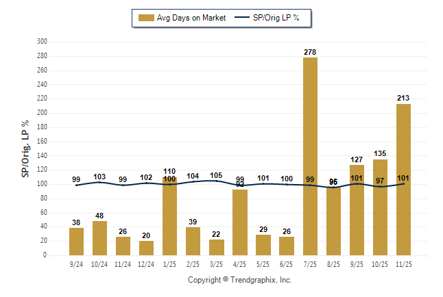November 2025 Average Days on Market trend Remains Steady and Sold/Original List Price Ratio was Rising**