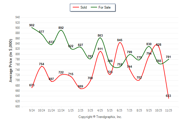 November 2025 Average For Sale Price was Neutral and Average Sold Price was Neutral**