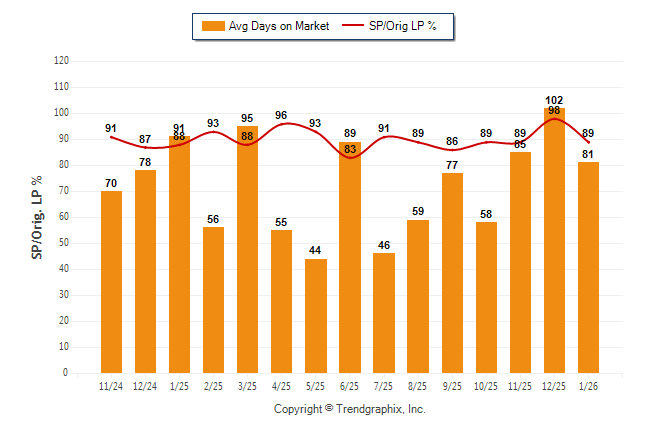 January 2026 Average Days on Market trend Remains Steady and Sold/Original List Price Ratio Remains Steady**