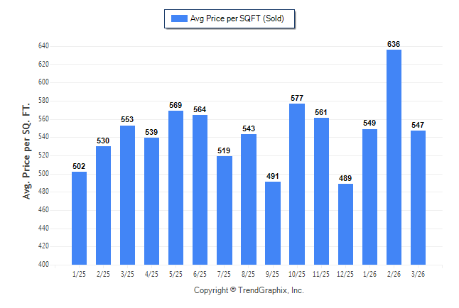 March 2026 Average Sold Price per Square Footage was Neutral**