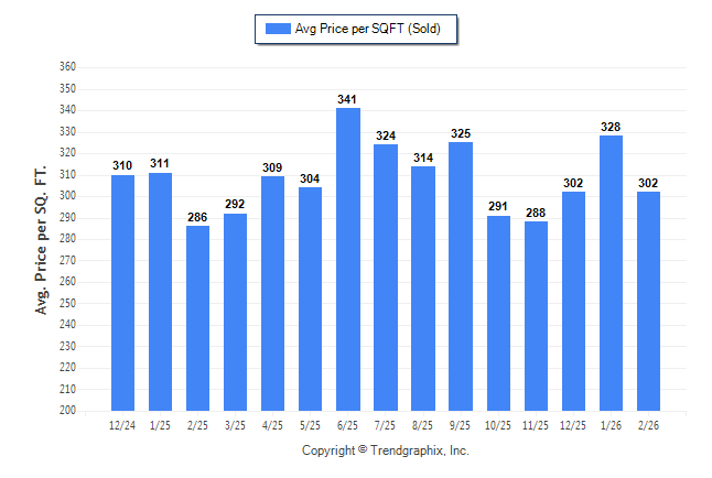 February 2026 Average Sold Price per Square Footage was Neutral**