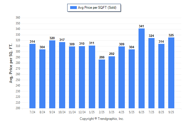 September 2025 Average Sold Price per Square Footage was Appreciating**
