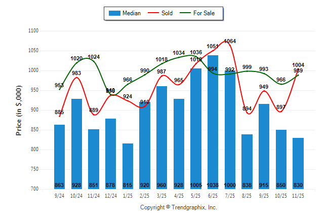 November 2025 Median Price was Depreciating, Avg. For Sale Price was Neutral, and Avg. Sold Price was Neutral**