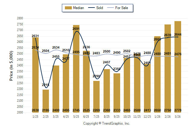 March 2026 Median Price was Appreciating, Avg. For Sale Price was Depreciating, and Avg. Sold Price was Appreciating**