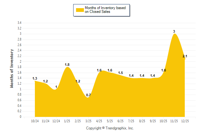Curnt vs. Same Month 1 Yr Ago: Months of Inventory (Closed Sales)