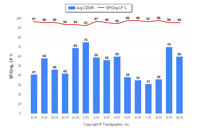 October 2025 Average Continuous Days on Market trend Remains Steady and Sold/Original List Price Ratio was Falling**