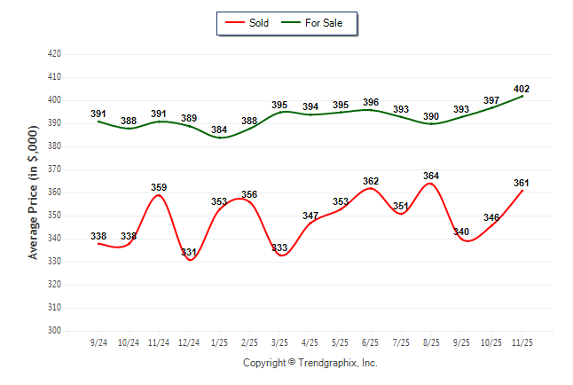 November 2025 Average For Sale Price was Appreciating and Average Sold Price was Neutral**