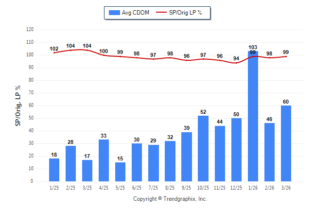 March 2026 Average Continuous Days on Market trend Remains Steady and Sold/Original List Price Ratio was Rising**