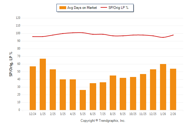 February 2026 Average Days on Market trend Remains Steady and Sold/Original List Price Ratio Remains Steady**