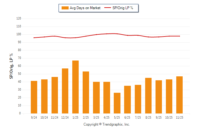 November 2025 Average Days on Market trend was Rising and Sold/Original List Price Ratio Remains Steady**