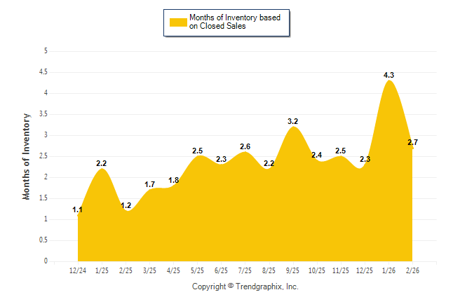 Curnt vs. Same Month 1 Yr Ago: Months of Inventory (Closed Sales)