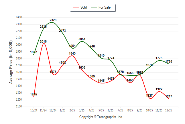December 2025 Average For Sale Price was Neutral and Average Sold Price was Depreciating**