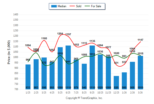 March 2026 Median Price was Appreciating, Avg. For Sale Price was Neutral, and Avg. Sold Price was Appreciating**