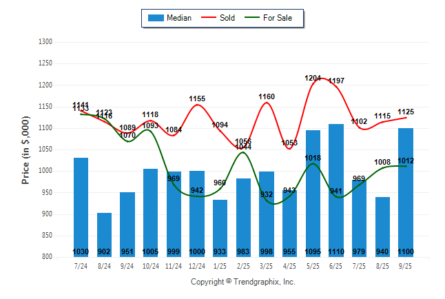 September 2025 Median Price was Neutral, Avg. For Sale Price was Appreciating, and Avg. Sold Price was Neutral**