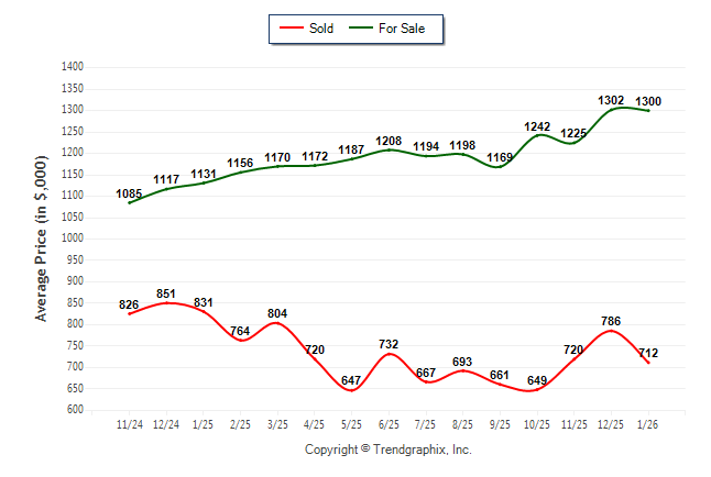 January 2026 Average For Sale Price was Neutral and Average Sold Price was Neutral**