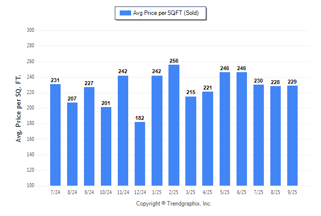 September 2025 Average Sold Price per Square Footage was Neutral**