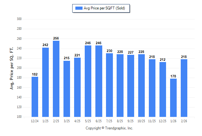 February 2026 Average Sold Price per Square Footage was Neutral**