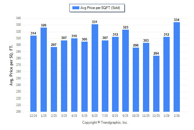 February 2026 Average Sold Price per Square Footage was Appreciating**
