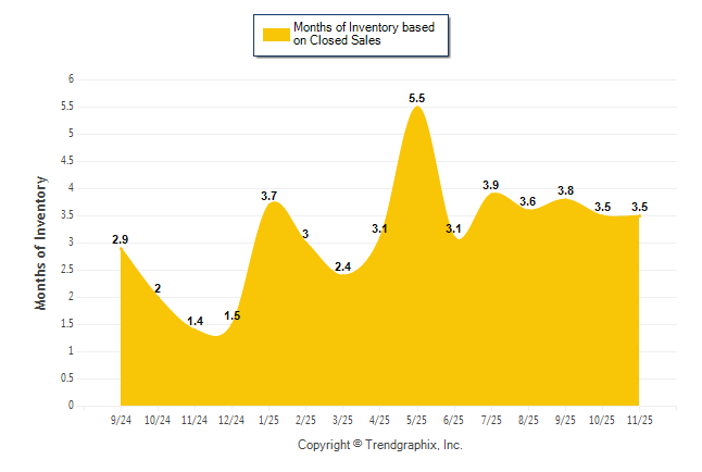 Curnt vs. Same Month 1 Yr Ago: Months of Inventory (Closed Sales)
