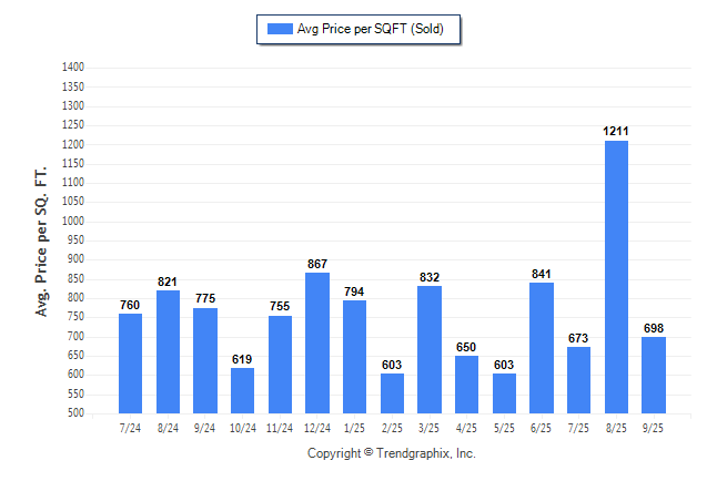September 2025 Average Sold Price per Square Footage was Neutral**