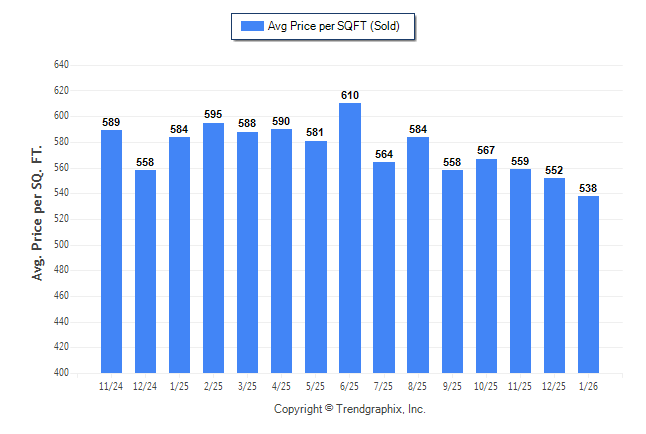 January 2026 Average Sold Price per Square Footage was Depreciating**