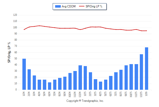 January 2026 Average Continuous Days on Market trend was Rising and Sold/Original List Price Ratio Remains Steady**