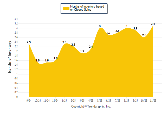 Curnt vs. Same Month 1 Yr Ago: Months of Inventory (Closed Sales)