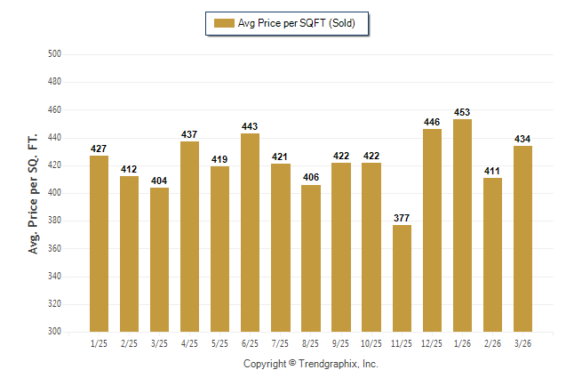 March 2026 Average Sold Price per Square Footage was Neutral**