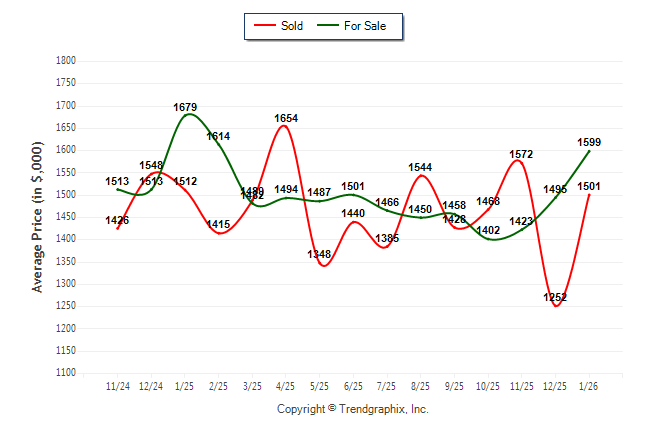 January 2026 Average For Sale Price was Appreciating and Average Sold Price was Neutral**