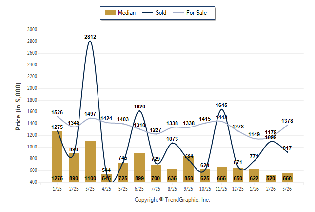 March 2026 Median Price was Neutral, Avg. For Sale Price was Neutral, and Avg. Sold Price was Neutral**