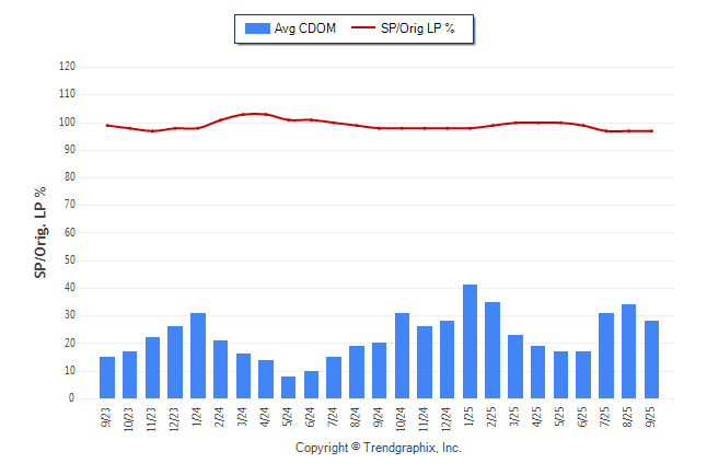 September 2025 Average Continuous Days on Market trend Remains Steady and Sold/Original List Price Ratio was Falling**