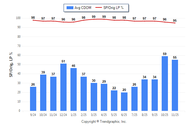 November 2025 Average Continuous Days on Market trend Remains Steady and Sold/Original List Price Ratio was Falling**