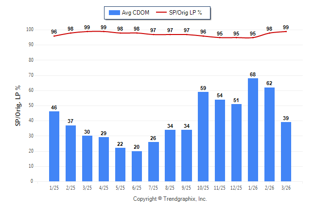 March 2026 Average Continuous Days on Market trend Remains Steady and Sold/Original List Price Ratio was Rising**