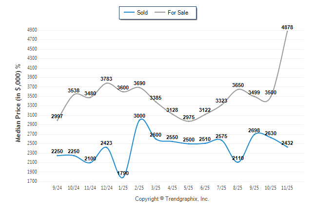 November 2025 Median Active was Appreciating and Median Sold Price was Neutral**