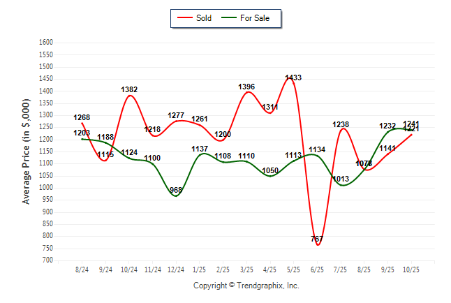 October 2025 Average For Sale Price was Appreciating and Average Sold Price was Appreciating**
