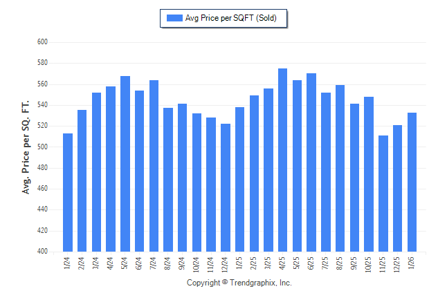 January 2026 Average Sold Price per Square Footage was Neutral**