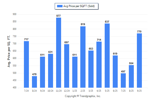 September 2025 Average Sold Price per Square Footage was Neutral**