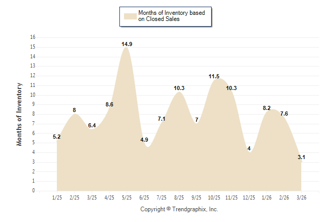 Curnt vs. Same Month 1 Yr Ago: Months of Inventory (Closed Sales)