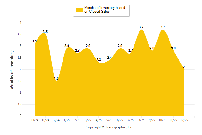 Curnt vs. Same Month 1 Yr Ago: Months of Inventory (Closed Sales)